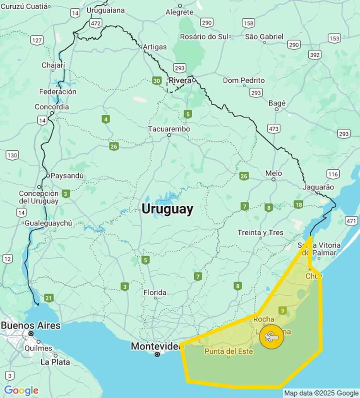 La advertencia amarilla de Meteorología por vientos fuertes y persistentes rige para la costa sureste del país, desde Canelones a Rocha, (ver mapa).