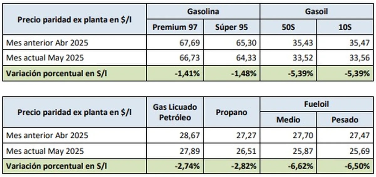 El precio de la nafta se mantiene en 78,54 pesos el litro de Súper y en 81,08 pesos el litro de Premium desde el mes de enero. Mientras que el gasoil tuvo una rebaja en mayo de 0,75 pesos para el litro de 50S y de 0,87 pesos para el litro de 10S. El supergás se mantiene en 88,46 pesos desde enero.