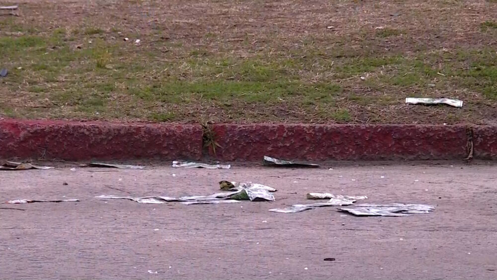 En la escena quedaron varios billetes en la calle, a pocos pasos de donde está la estructura explotada.