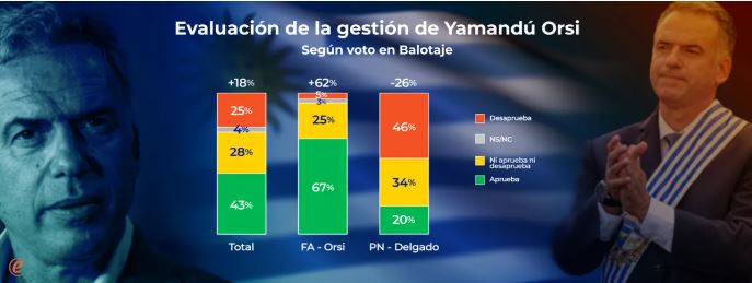 Al culminar su primer semestre de gestión, Orsi recibe un saldo positivo de evaluación. El apoyo es muy alto en su base electoral mientras que, entre los votantes de la oposición, comienza a crecer la desaprobación.