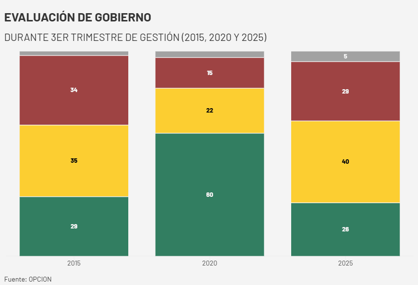 Desde mayo hasta la fecha, la evaluación positiva pasó de un 30% a un 26%, mientras que la negativa subió de 19% a 29%.