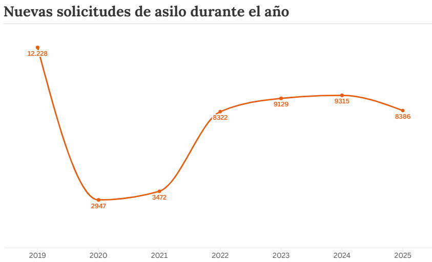 En el primer semestre de este año se cursaron 8.386 solicitudes nuevas de asilo, cuando en todo 2024 fueron 9.315. Acnur recalca que, de esas más de 8.000, ha asistido a 5.317 este 2025.