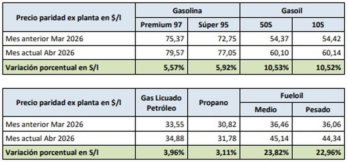 La evolución de los precios de marzo a abril da un incremento de 5,92% en la nafta Súper 95, de 10,53% en el gasoil 50S y de 3,96% en el supergás.