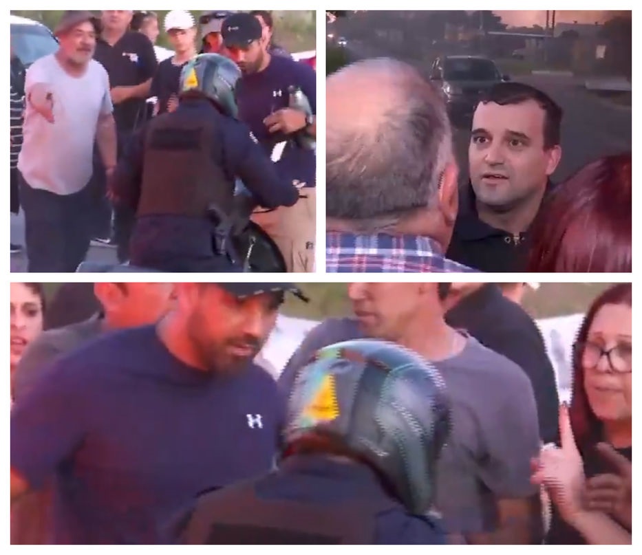 “¡No podés pasar!”: vecinos a los gritos y forcejeos con policía en medio de manifestación