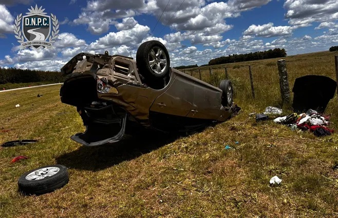 El siniestro ocurrió sobre las 11:50 horas de este sábado, tras el despiste y vuelco del auto en la ruta 14.
