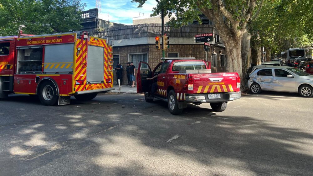 Camión de Bomberos que iba a apagar un incendio chocó contra un auto en Tres Cruces, generando daño a otros dos vehículos