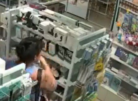 Las imágenes muestran la forma en que agarraba distintos productos y los metía dentro de un bolso.