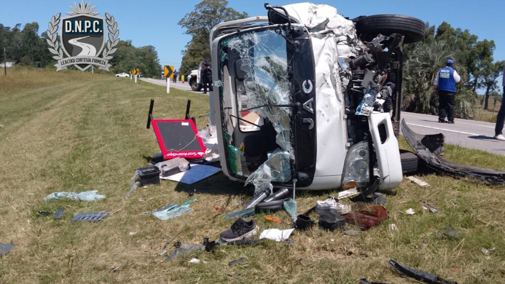 Un camión se cruzó de senda e impactó contra tres vehículos a la altura del kilómetro 19, en el departamento de Rocha